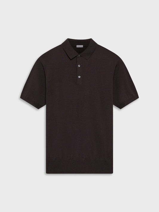 Short sleeve polo in silk and cotton brown