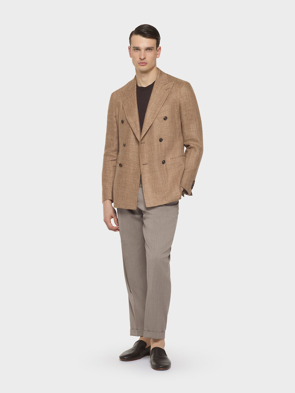 A must-have for every occasion. Knit T-shirt with ribbed hem and cuffs. Solid brown in a fine silk and cotton blend. Perfect as a layer under a jacket for effortless spring looks.