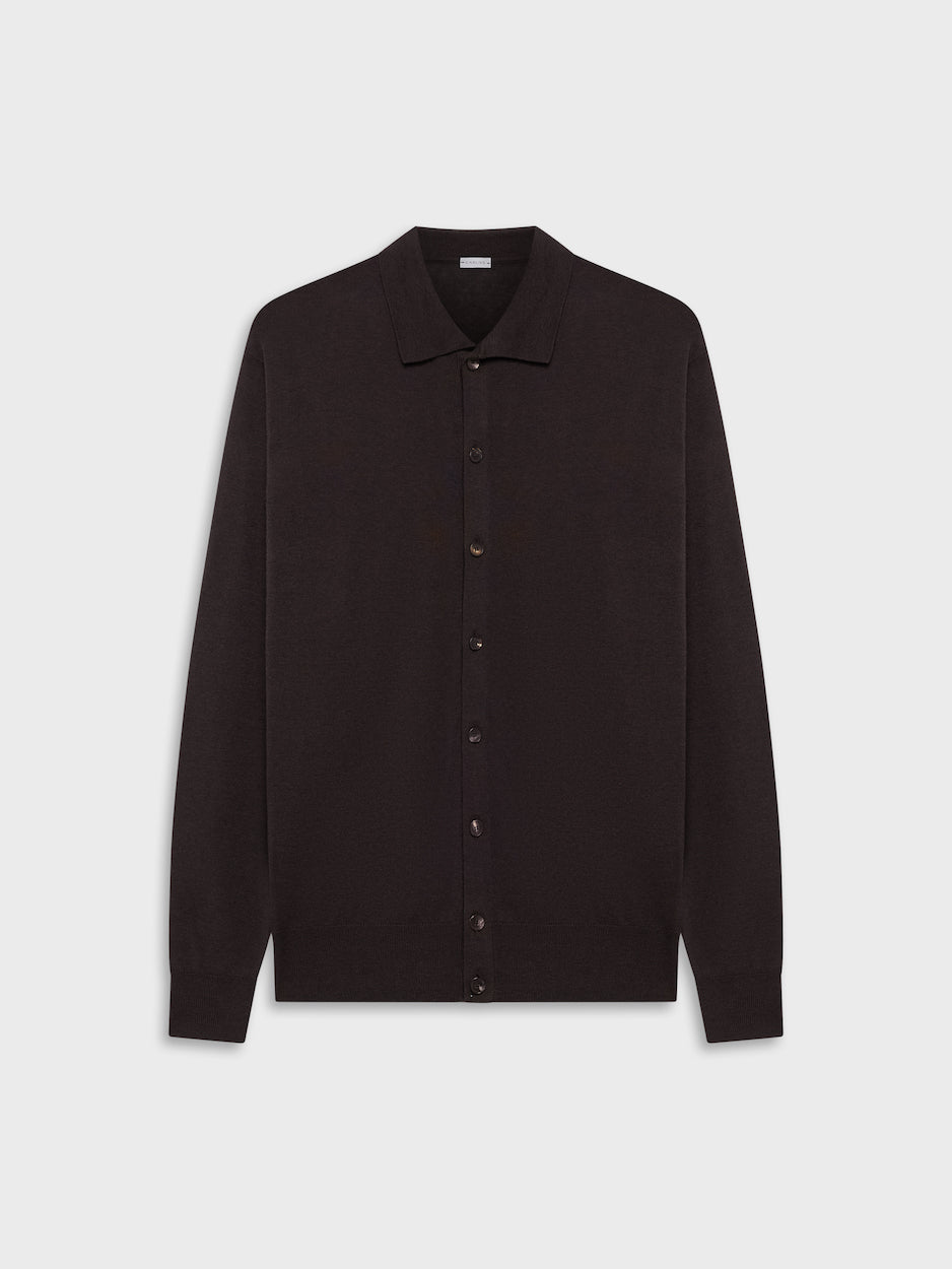 A must-have for every occasion. Long-sleeve polo with ribbed collar, hem and cuffs. Solid brown in cotton. Perfect as a layering piece in spring looks.