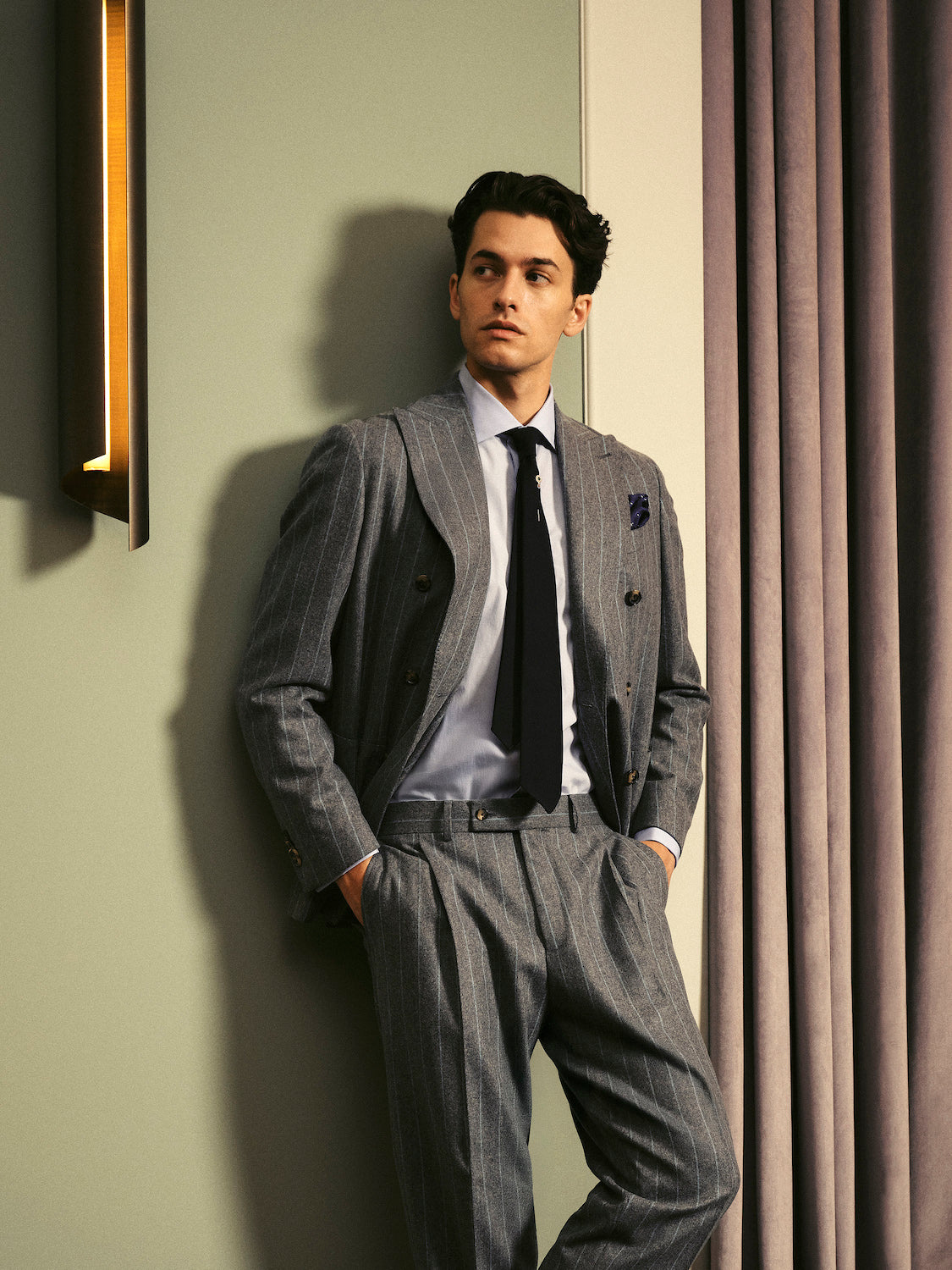 Esplora il soft focus invernale di Caruso, dove flanelle ultra-morbide e preziose mischie di lana e seta si incontrano in tonalità sofisticate e inaspettate.